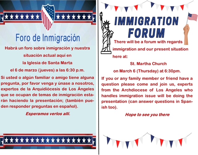 March 9: Immigration Information Session - 1 pm at St. Albert the Great Catholic Church. (804 E. Compton Blvd. Rancho Dominguez, CA 90220)